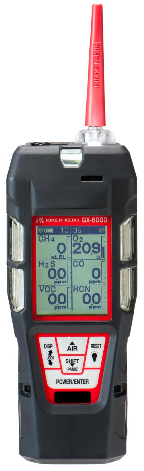Detector de 6 gases portátil com bomba de sucção embutida mais completo do mercado. Possui